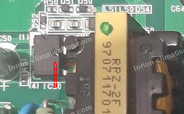 consulter ce sujet Panne unité extérieure Mitsubishi MXZ-4A71VA sur le forum ClimatisationLe condo, on le change, ça coûte 1 euro. L'IPM à changer est très probablement celui sous les cosses R et S. Pour vous en assurer, coupez sa patte P, c'est celle la plus proche du centre de la carte, dans la série de 4 sur le côté où il y a peu de pattes ; le court-circuit devrait disparaître entre R/S. Pour déposer l'IPM, coupez les 5 pattes du côté en question, puis faites 17 oscillations du circuit hybride autour de l'autre côté pour casser toutes ses pattes, il faudra ensuite extraire les restes de pattes, mais ce n'est pas compliqué avec un fer à souder et une précelle. D'autres meulent les pattes avec une Dremel, ça marche aussi.